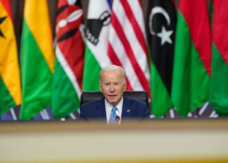 WASHINGTON (Reuters) -U.S. President Joe Biden on Thursday announced he would support the African Union joining the G20 group of large economies as a permanent member, part of Washington’s efforts to reinvigorate ties with a region that has taken a back seat to other priorities in recent years.