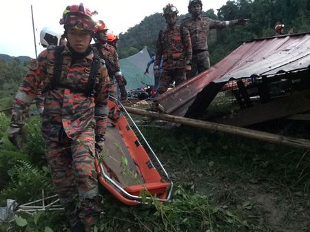 BATANG KALI, Malaysia (Reuters) -A landslide killed at least 21 people, including children, while they slept in their tents at an unlicensed campsite in Malaysia on Friday, officials said, as search teams scoured thick mud and downed trees for survivors.