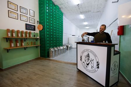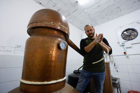 BEIT JALA, West Bank (Reuters) – In a small distillery just outside Bethlehem in the Israeli-occupied West Bank, a clear liquid drips out of a copper pot still into a stainless steel barrel, ringing like church bells.
