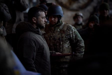 On Tuesday, Zelenskiy had made a surprise visit to the eastern front-line city of Bakhmut, a site of some of the fiercest fighting in the war, his office said, where, dressed in trademark combat khaki, he handed out medals to soldiers.