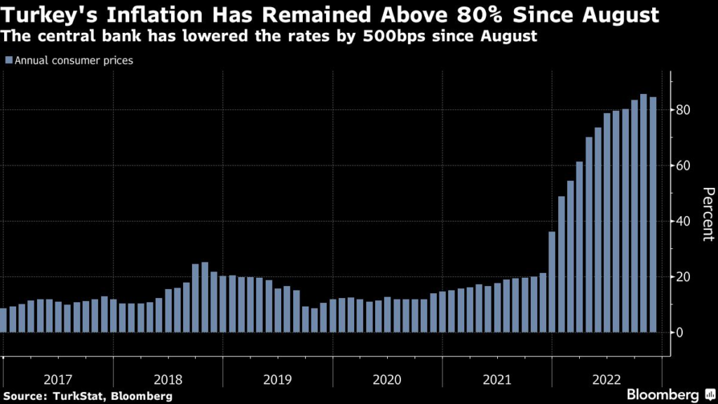 Four rounds of Turkish rate cuts starting in August delivered 500 basis points of easing during a period when inflation topped 80%.