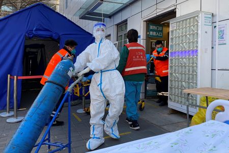 BEIJING/SHANGHAI (Reuters) -China is expecting a peak in COVID-19 infections within a week, a health official said, with authorities predicting extra strain on the country’s health system even as they downplay the disease’s severity and continue to report no new deaths.