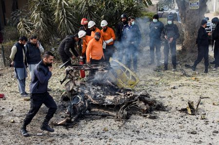 ISLAMABAD (Reuters) -Pakistani militants thought to have been on the verge of carrying out a suicide bombing in Islamabad’s government district blew themselves up on Friday as police pursued their car, killing one officer, authorities said.