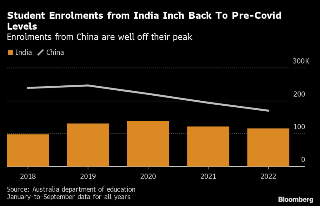 At the University of Sydney, 2022 marked the highest-ever international enrollments from outside China, Vice Chancellor Mark Scott said, with the surge driven by numbers from India.