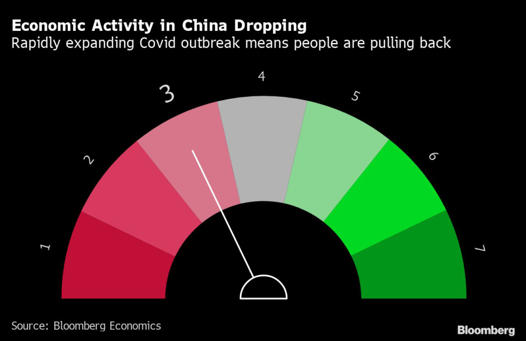 The 3.6 million trips made on the Beijing subway last Thursday were 70% below the level on the same day in 2019, and traffic congestion on the city’s streets was only 30% of the level in January 2021, according to BloombergNEF.