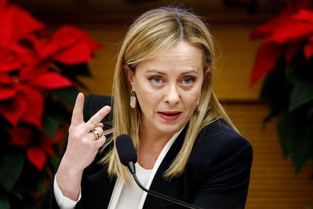 ROME (Reuters) – Italian Prime Minister Giorgia Meloni took aim at the EU’s financial institutions on Thursday, telling the European Central Bank (ECB) to be more careful in the way it communicates and saying the euro zone’s bailout fund serves no useful purpose.