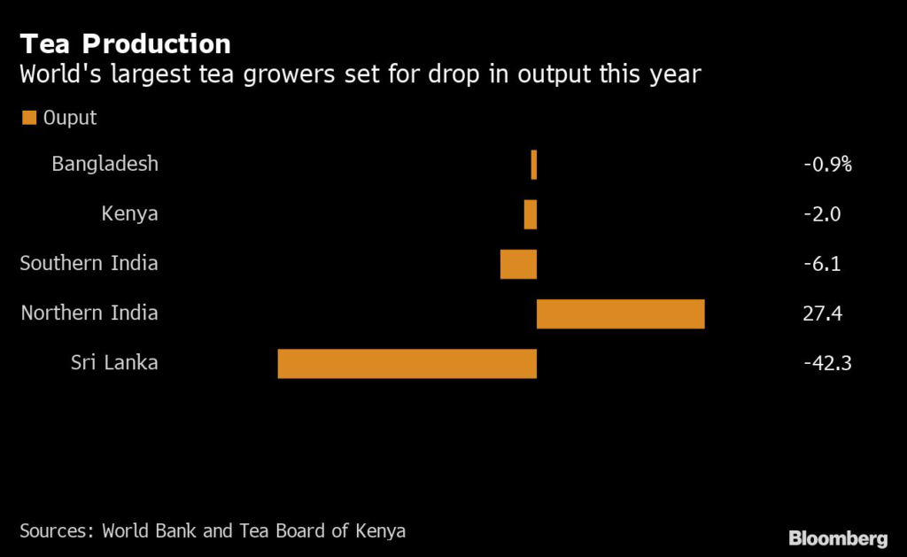 (Bloomberg) — Kenya’s black tea export volumes are poised to decline for the first time in five years after East Africa’s worst drought in four decades stymied crop planting and demand from its top buyers slowed.