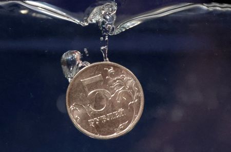 MOSCOW (Reuters) -The Russian rouble slumped to an eight-month low against the dollar on Thursday, struggling under the weight of expectations that sanctions on Russian oil and gas may limit export revenues.