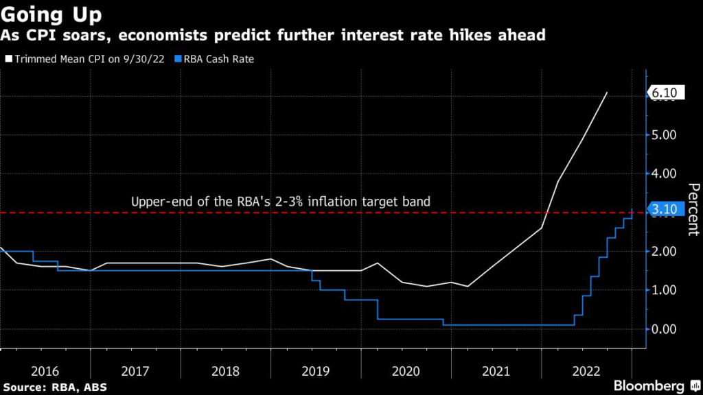 The Reserve Bank has lifted interest rates by 3 percentage points from a record low 0.1% in May and has signaled more increases are likely in 2023.