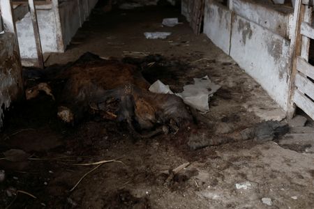 Nearby in the village, a blasted stable strewn with animal bones is a monument to the dark fate of animals in a war zone.