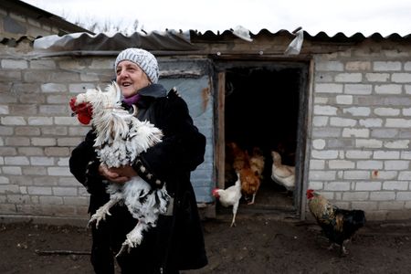 But not Yevhennia and Ivan, who say they could not bear to abandon their rabbits, ducks, chickens and pigeons.