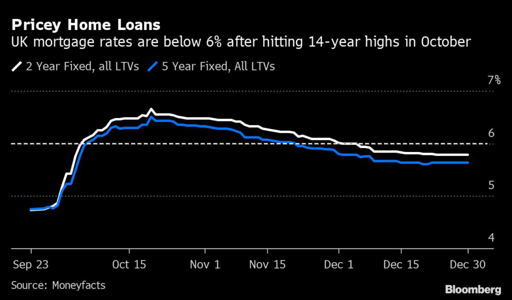 Mortgage rates have surged in Britain since then-Prime Minister Liz Truss’s September mini-budget sent key home loan costs to highs of 6.65%.