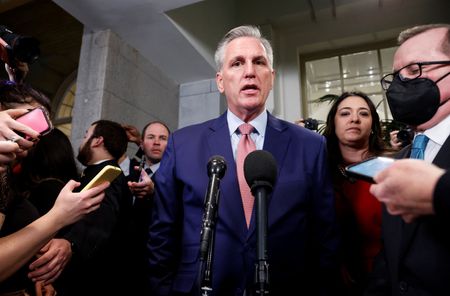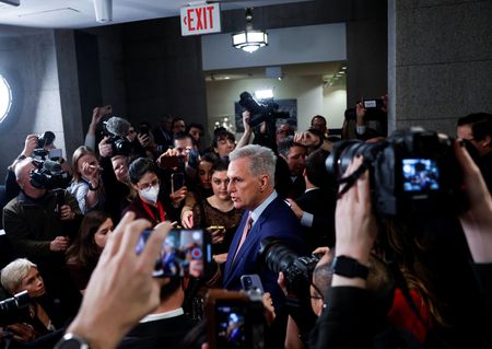WASHINGTON (Reuters) -Republican Kevin McCarthy vowed on Tuesday to remain in the race to be the powerful U.S. House of Representatives speaker, hours after hardline members of his party repeatedly blocked his bid to lead their brand-new majority.