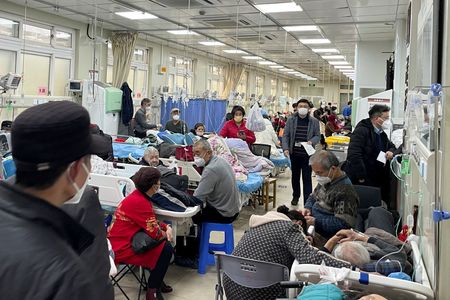 But at a hospital in Shanghai’s suburban Qingpu district, patients on beds lined the corridors of the emergency treatment area and main lobby on Thursday, most of them elderly and several breathing with oxygen tanks, a Reuters witness said.