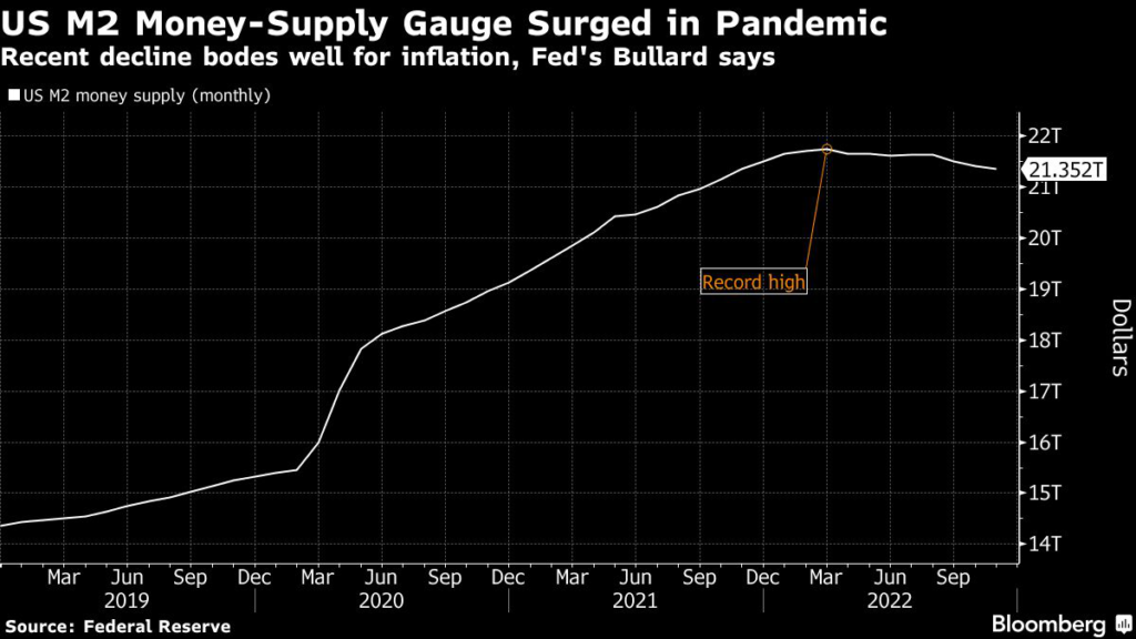 (Bloomberg) — A sharp decline in the M2 measure of the US money supply could be good news for policymakers in their efforts to bring high inflation under control, St.