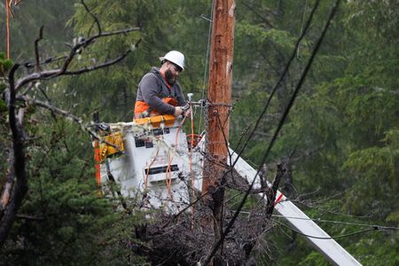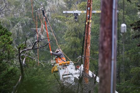 MENDOCINO, Calif. (Reuters) – Harbormaster Anna Neumann dashed from vessel to vessel, business to business at the port she manages near the mouth of northern California’s Noyo River, ensuring all was secure as storms bringing waves as high as a three-story building pummeled the state.