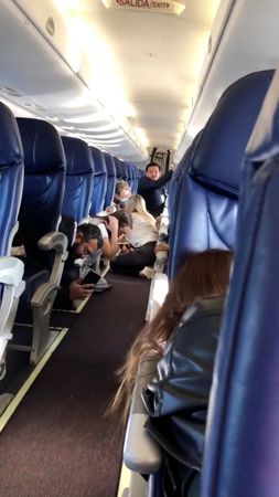 A video circulating on social media, appearing to capture the same incident, showed passengers crouching low below their seats as a child cried.