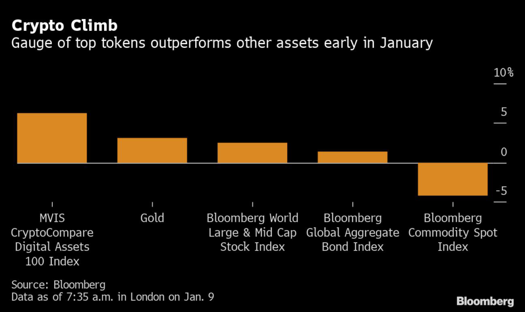 (Bloomberg) — A cryptocurrency sector battered by turmoil last year is showing some signs of life early in 2023, posting bigger gains than other asset classes like stocks, bonds and gold.
