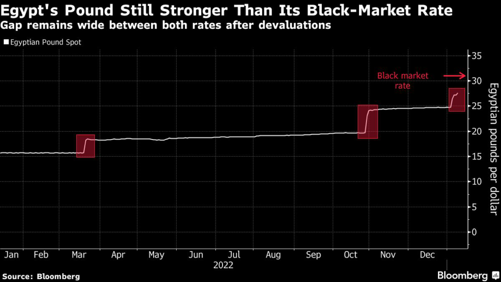 Egypt has struggled to narrow the gap between the pound’s black-market and official rates even after the currency’s third devaluation since March.