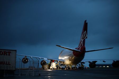 NEWQUAY, England (Reuters) -An English surfing resort was counting down the final minutes until it launches the first satellites from Western Europe on Monday, with Virgin Orbit’s “Cosmic Girl” awaiting take-off on the runway of Newquay’s spaceport in Cornwall.