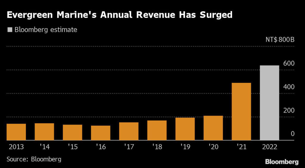 Evergreen Marine’s largesse is the result of an unprecedented industry-wide shipping boom over the past two years, driven by a pandemic-fueled surge in demand for consumer goods and freight rates.