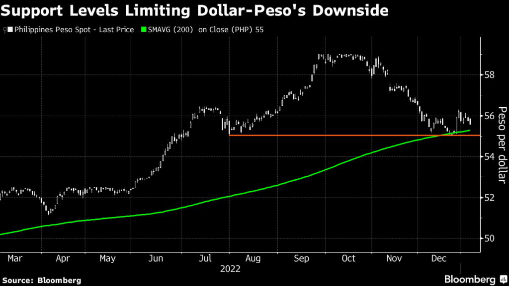 (Bloomberg) — The Philippine peso will struggle to repeat its strong year-end performance as overseas remittances fade and the nation’s current-account deficit weighs.