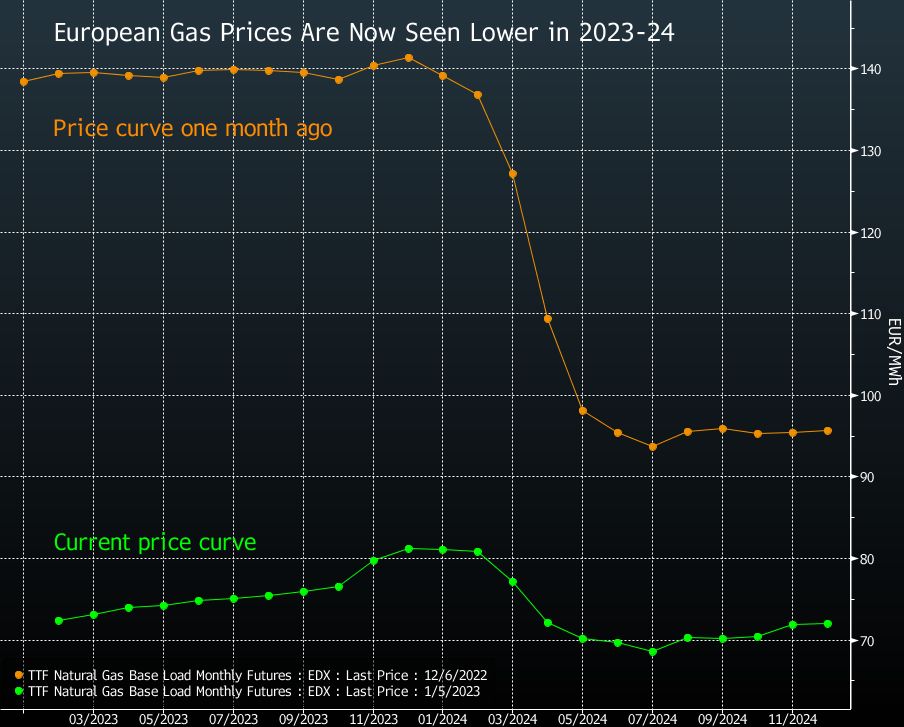 The combination of conditions — including China’s Covid woes blunting competition for LNG cargoes — would take the edge off inflation, stabilize Europe’s economic outlook and leave the Kremlin with less leverage over Ukraine’s allies, if they persist.
