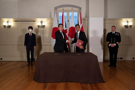 LONDON (Reuters) -British Prime Minister Rishi Sunak and his Japanese counterpart Fumio Kishida signed a defence agreement in London on Wednesday that will allow the countries to deploy forces on each other’s soil, the latest move towards closer security ties.