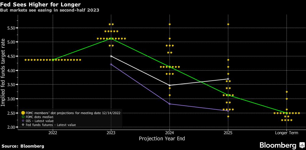 That message was again driven home in recent days. Atlanta Fed President Raphael Bostic said the central bank should raise interest rates above 5% by early in the second quarter and then go on hold for “a long time.” Esther George of Kansas said the Fed should hold above 5% into 2024.