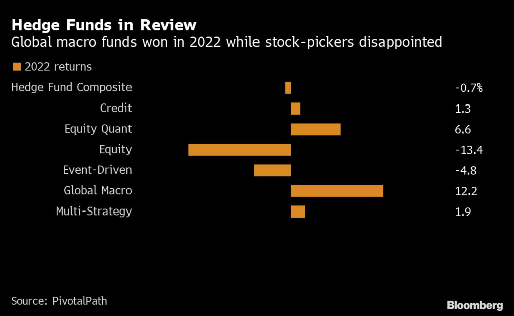 (Bloomberg) — Hedge fund clients profited most by investing in macro and multi-strategy hedge funds last year — and many of them are betting the same strategies will be winners again in 2023.