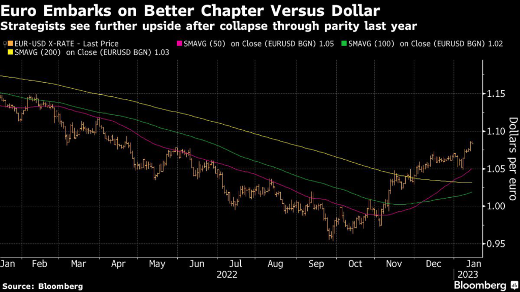 The euro’s gains also reflect a surge of optimism over Europe’s economic outlook, given lower gas prices and China’s reopening, which is seen as a boon for trade.