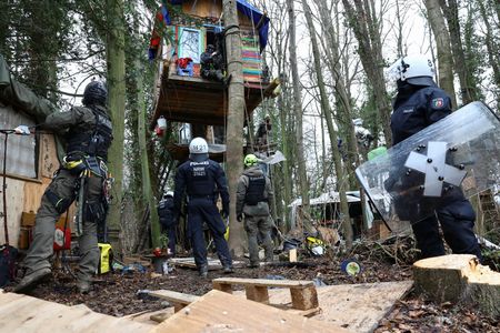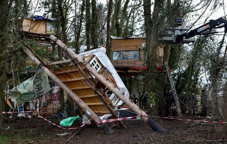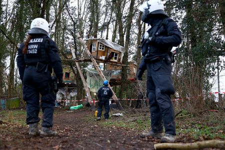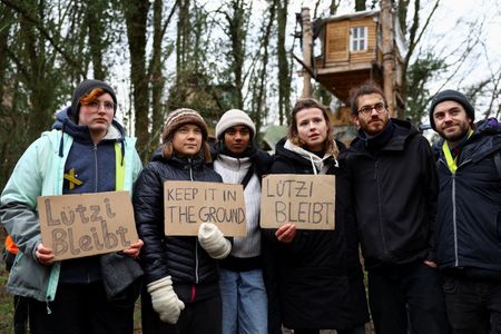 BERLIN (Reuters) – Climate activist Greta Thunberg condemned the forced removal of protesters from an abandoned village in western Germany as outrageous during a visit to the site, where demonstrators have dug in to try to stop the expansion of a coal mine.