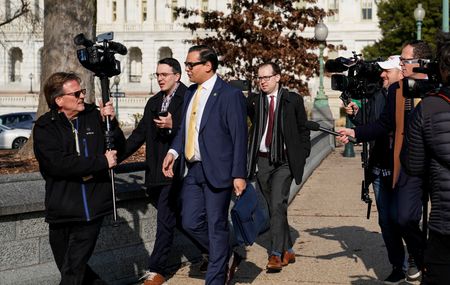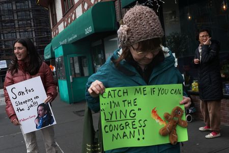 WASHINGTON (Reuters) – U.S. Representative George Santos said on Thursday he would vacate his seat only if he loses the next election, clarifying an earlier statement that he would resign if “142 people” asked him to because of a string of false claims he made about his work and personal background.