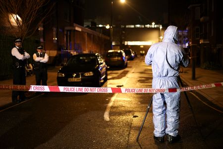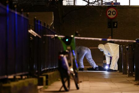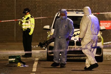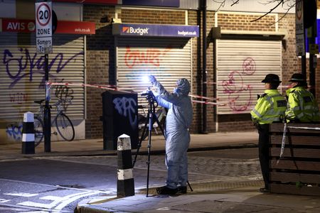 LONDON (Reuters) – A seven-year-old girl was left with life-threatening injuries after she and five others, including another child, were hurt in a drive-by shooting on Saturday near a church in London where a funeral was taking place, British police said.