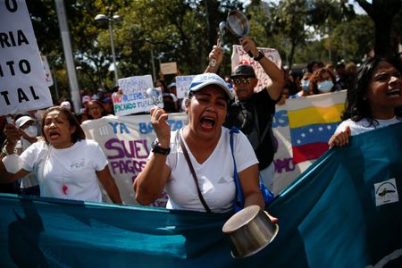 (Reuters) -Teachers, retirees and workers’ unions marched in at least six Venezuelan cities on Monday to demand better salaries, as the government of President Nicolas Maduro faces renewed challenges in its attempt to fight inflation.