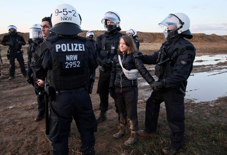 LUETZERATH, Germany (Reuters) -Climate campaigner Greta Thunberg was detained alongside other activists on Tuesday during protests against the demolition of a village to make way for a coal mine expansion but was released after an identity check, according to police.
