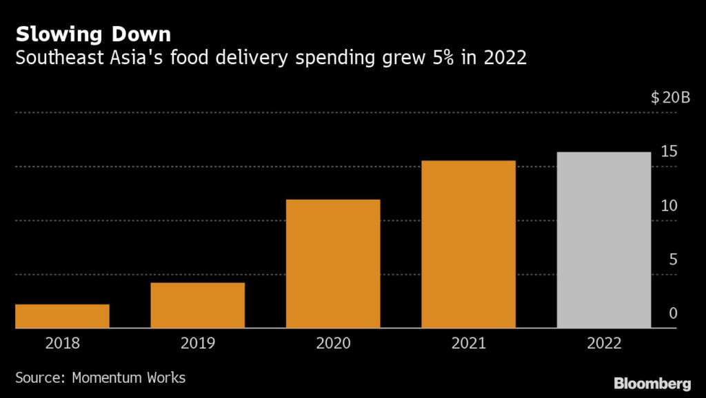 Southeast Asia’s food delivery spending grew at the slowest pace in at least four years in 2022, highlighting the challenges faced by regional internet giants Grab Holdings Ltd.
