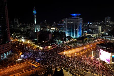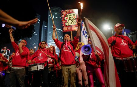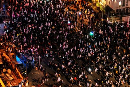 TEL AVIV (Reuters) -Tens of thousands of Israelis joined demonstrations on Saturday against judicial reform plans by Prime Minister Benjamin Netanyahu’s new government that protesters say will threaten democratic checks and balances on ministers by the courts.