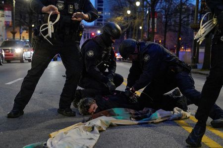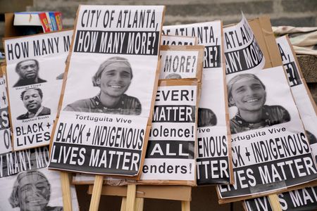 ATLANTA (Reuters) – A protest in Atlanta briefly turned violent on Saturday as demonstrators set a police car on fire and smashed windows of buildings.