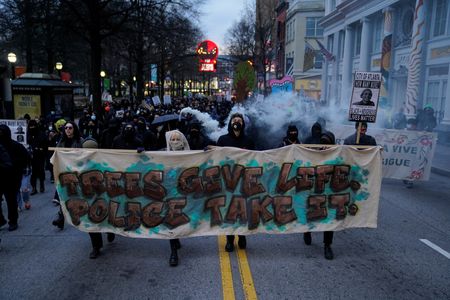 Marchers had gathered to protest the killing of an activist by law enforcement on Wednesday during a raid to clear the construction site of a public safety training facility that activists have derided with the nickname “Cop City”.