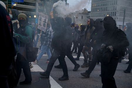 The demonstration started peacefully, then abruptly escalated with some protesters throwing fireworks and rocks and smashing buildings’ windows with hammers, according to a Reuters witness.