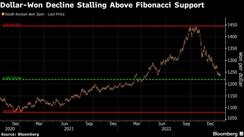 (Bloomberg) — The Korean won’s near 17% rally since late October may be reaching its final stages as signs of a weaker economic outlook contrast with optimism over other emerging-market peers.