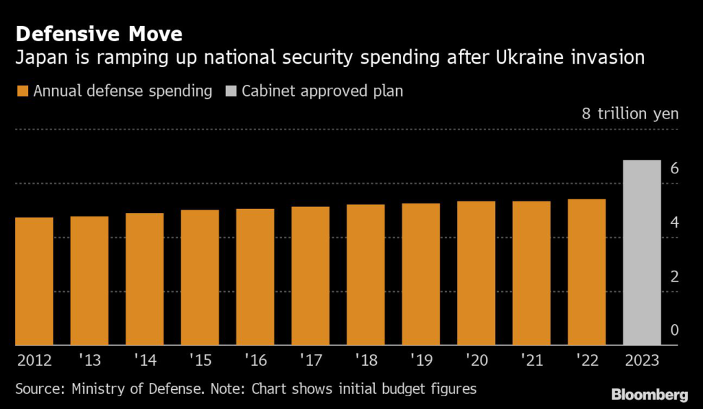 Since then, Kishida revealed that he aims to boost defense spending to 43 trillion yen ($330 billion) over the next five years, abandoning a decades-old cap on military costs to 1% of gross domestic product.