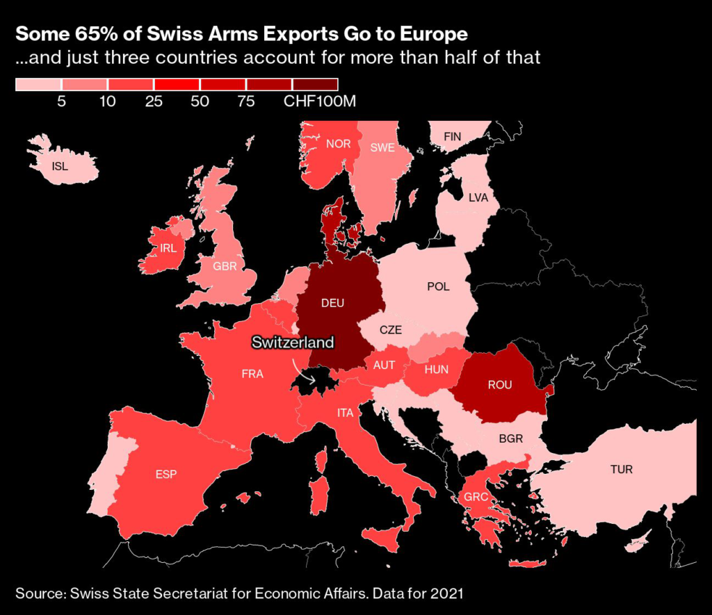 Traditionally neutral Switzerland has faced criticism from Germany and Spain over blocking shipments of Swiss-made ammunition to Ukraine.