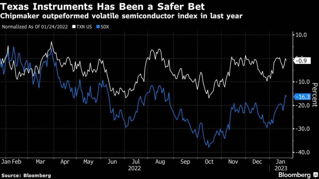 But Texas Instruments, which was a relatively strong performer last year, has lagged gains by its peers in 2023.