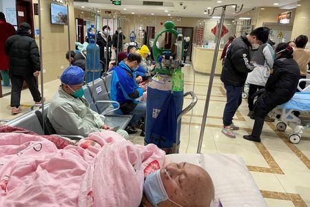 HONG KONG (Reuters) -Critically ill COVID-19 cases in China are down 72% from a peak early this month while daily deaths among COVID-19 patients in hospitals have dropped 79% from their peak, the Center for Disease Control and Prevention said on Wednesday.
