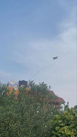 A video shared widely on Congolese social media showed a projectile shooting towards an airborne military plane, before exploding in the air near the plane, which continued to fly.