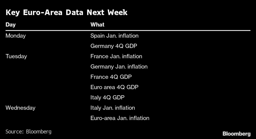 The first full estimate of German fourth-quarter growth will be released on Monday, kicking off a busy week for investors focusing on the region.