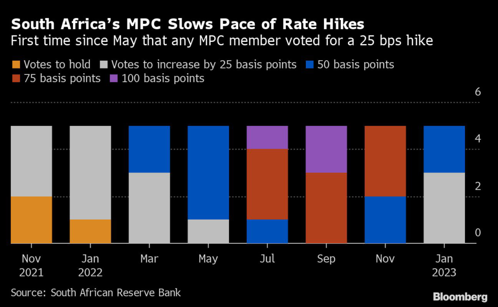 That’s as rolling blackouts, known locally as loadshedding, are predicted to shave two percentage points off output growth during the year, according to the central bank’s projections.