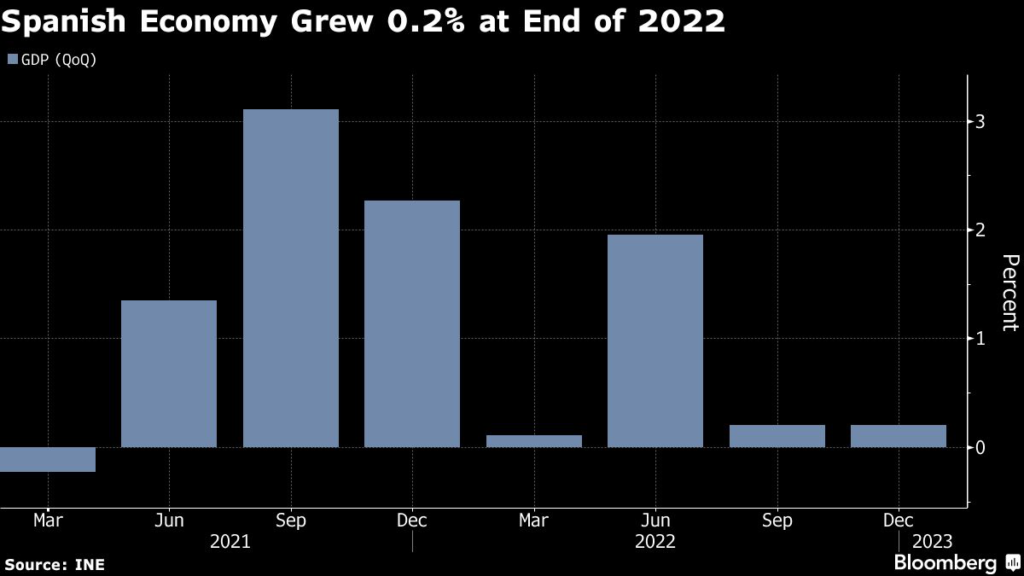 (Bloomberg) — Spain grew more than anticipated in the final quarter of last year, indicating the euro zone’s fourth-largest economy is on track to avoid a recession even as high inflation squeezes household spending.